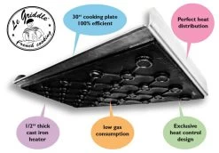 - Exclusive stainless steel griddle with cast iron sub-plate plate which provides even heat.